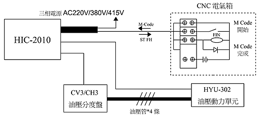 3. 执行完成后,HIC-2010可编程控制器再送回一个完成信号给CNC机器。